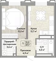 Однокомнатная квартира в ЖК "Сердце Бонивура" на 2 этаже. Квартира без отделки, полностью готова к чистовой отделке и дальнейшему ремонту. Общая площадь: 37.7 кв.м., жилая: 12.5 кв.м., площадь просторной кухни-столовой: 12.7 кв.м. Все окна выходят на одну сторону. В квартире один совмещенный санузел. Высота потолков 2.85 м.