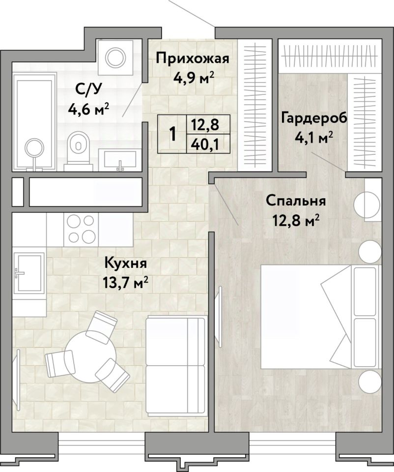 Однокомнатная квартира от застройщика в ЖК "Сердце Бонивура" на 4 этаже. Квартира без отделки, новый владелец может сделать ремонт по индивидуальному проекту. Общая площадь: 40.1 кв.м., жилая: 12.8 кв.м., площадь просторной кухни-столовой: 13.7 кв.м. Все окна выходят на одну сторону. В квартире один совмещенный санузел. Высота потолков 2.85 м.