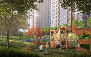 Дети постарше лазают по современному игровому комплексу или катаются на памп-треке — отвлекаясь от гаджетов и не выходя за территорию ЖК.