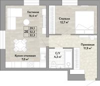 Просторная 2-комн. квартира с европланировкой в ЖК "Green 2" на 1 этаже. Квартира без отделки, после оформления собственности можно делать ремонт. Общая площадь: 52.3 кв.м., жилая: 29.1 кв.м., суммарная площадь гостиной-столовой с кухонной зоной: 23.4 кв.м. Европейская планировка, кухня и гостиная объединены в одно просторное помещение. Угловая квартира, идеально подойдет любителям тишины и панорамных видов. В квартире один совмещенный санузел. Высота потолков 2.7 м.