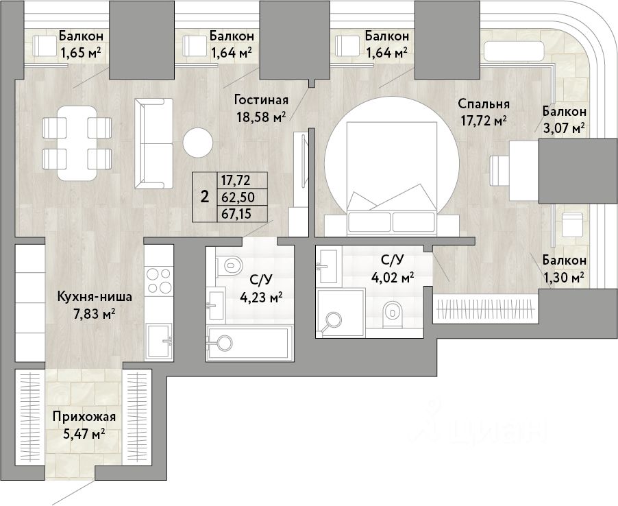 Просторная 2-комн. квартира с европланировкой и предчистовой отделкой в ЖК "Stories" на 19 этаже. Общая площадь: 62.5 кв.м., жилая: 36.3 кв.м., общая площадь гостиной-столовой с кухонной зоной: 26.62 кв.м. Европланировка, зона гостиной комнаты объединена с кухней. Квартира угловая, идеально подойдет любителям тишины и панорамных видов. В квартире три балкона, два совмещенных санузла. Высота потолков 2.9 м.