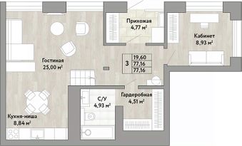 Просторная 3-комн. квартира с предчистовой отделкой в ЖК "Stories" на 1 этаже. Общая площадь: 77.16 кв.м. Высота потолков 2.9 м.