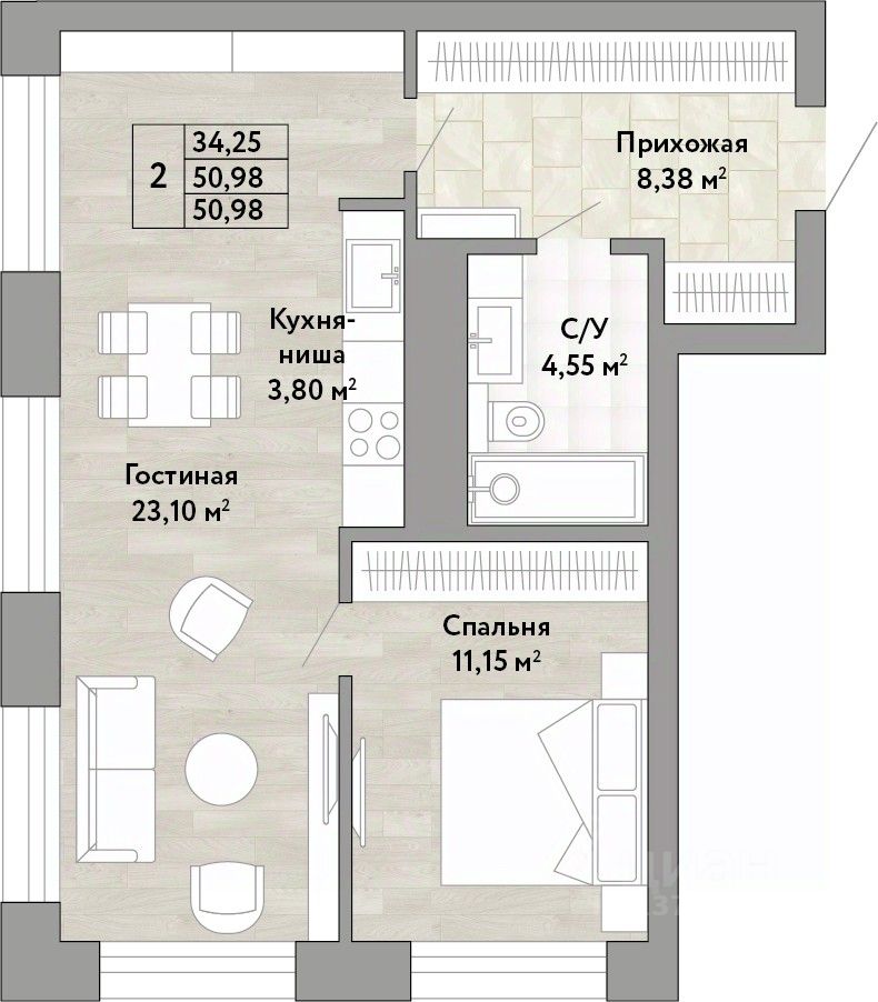 Продается 2-комн. квартира с европланировкой и предчистовой отделкой в ЖК "Stories" на 18 этаже. Общая площадь: 50.98 кв.м., жилая: 34.25 кв.м., общая площадь гостиной-столовой с кухонной зоной: 26.9 кв.м. Европланировка, в просторной кухне-гостиной удобно как готовить, так и отдыхать. Квартира угловая, идеально подойдет любителям тишины и панорамных видов. В квартире один совмещенный санузел. Высота потолков 2.9 м.