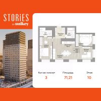 3-комн. квартира с европланировкой и предчистовой отделкой в ЖК "Stories" на 10 этаже. Общая площадь: 71.21 кв.м., жилая: 38.97 кв.м., суммарная площадь гостиной-столовой с кухонной зоной: 21.2 кв.м. Европейская планировка, площадь комнат позволяет разместить в них все необходимое, а в просторной кухне-гостиной удобно как готовить, так и отдыхать. Квартира угловая, идеально подойдет любителям тишины и панорамных видов. В квартире два совмещенных санузла. Высота потолков 2.9 м.