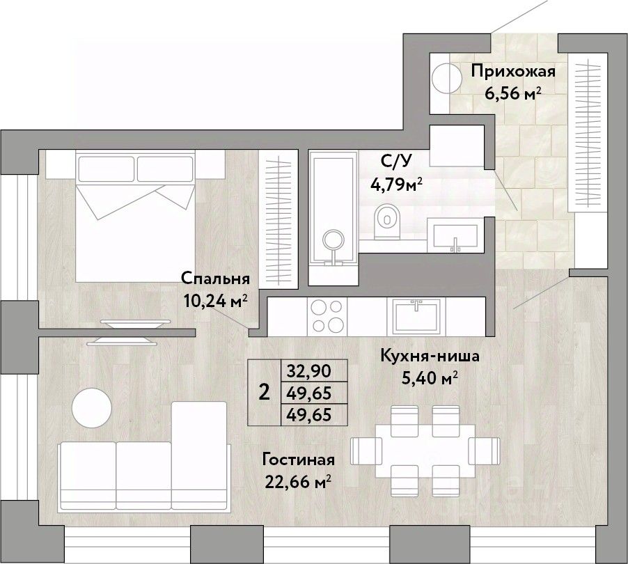 Просторная двухкомнатная квартира с европланировкой и предчистовой отделкой в ЖК "Stories" на 14 этаже. Общая площадь: 49.65 кв.м., жилая: 32.9 кв.м., суммарная площадь гостиной-столовой с кухонной зоной: 28.06 кв.м. Европланировка, зона гостиной комнаты объединена с кухней. Угловая квартира, окна oбecпeчивaют paвнoмepнoe ocвeщeниe в тeчeниe дня. В квартире один совмещенный санузел. Высота потолков 2.9 м.