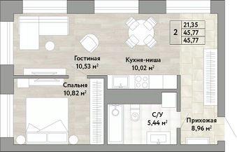 2-комн. квартира с европланировкой и предчистовой отделкой в ЖК "Stories" на 7 этаже. Общая площадь: 45.77 кв.м., жилая: 21.35 кв.м., суммарная площадь гостиной-столовой с кухонной зоной: 20.55 кв.м. Европейская планировка, кухня-гостиная - идеальный вариант для тех, кто любит часто принимать гостей. Квартира угловая, очень светлая, естественная вентиляция при открытии окон. В квартире один совмещенный санузел. Высота потолков 2.9 м.