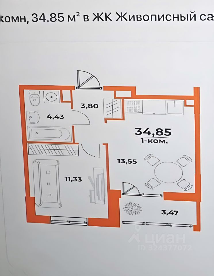 Квартира площадью 34.85 кв.м расположена на 6 этаже в доме высотой 6-10 этажей — идеальный вариант для тех, кто не любит первые и последние этажи. Планировка продумана до мелочей: просторная комната (11.71 кв.м), удобная кухня (13.24 кв.м), лоджия (3.29 кв.м) и санузел. Дом монолитный, с высокими потолками, лифтами и современными коммуникациями. Район перспективный: развитая инфраструктура, транспортная доступность и все необходимое рядом.