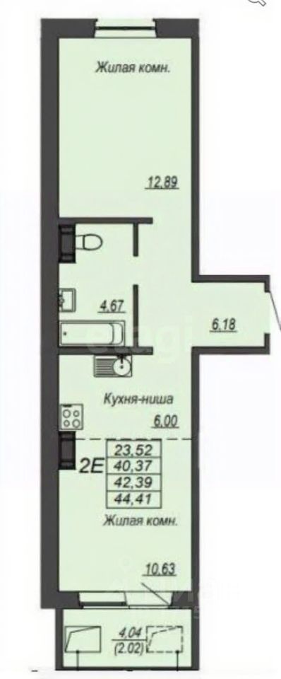 Планировка: 42 м²: изолированная комната/спальня + светлая гостиная-кухня.
