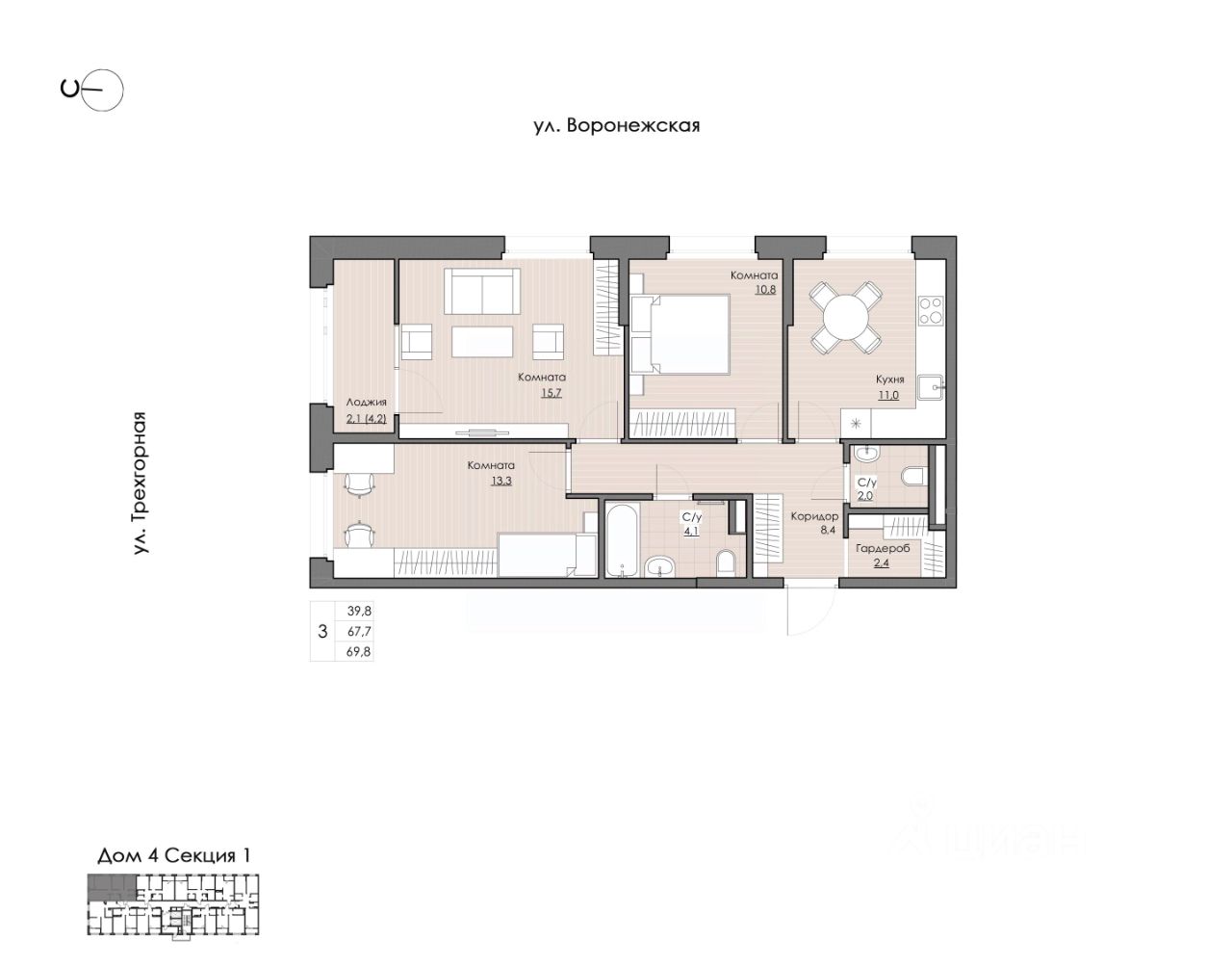 Окна выходят на две стороны света. В квартире 2 санузла для комфорта утренних сборов на работу.