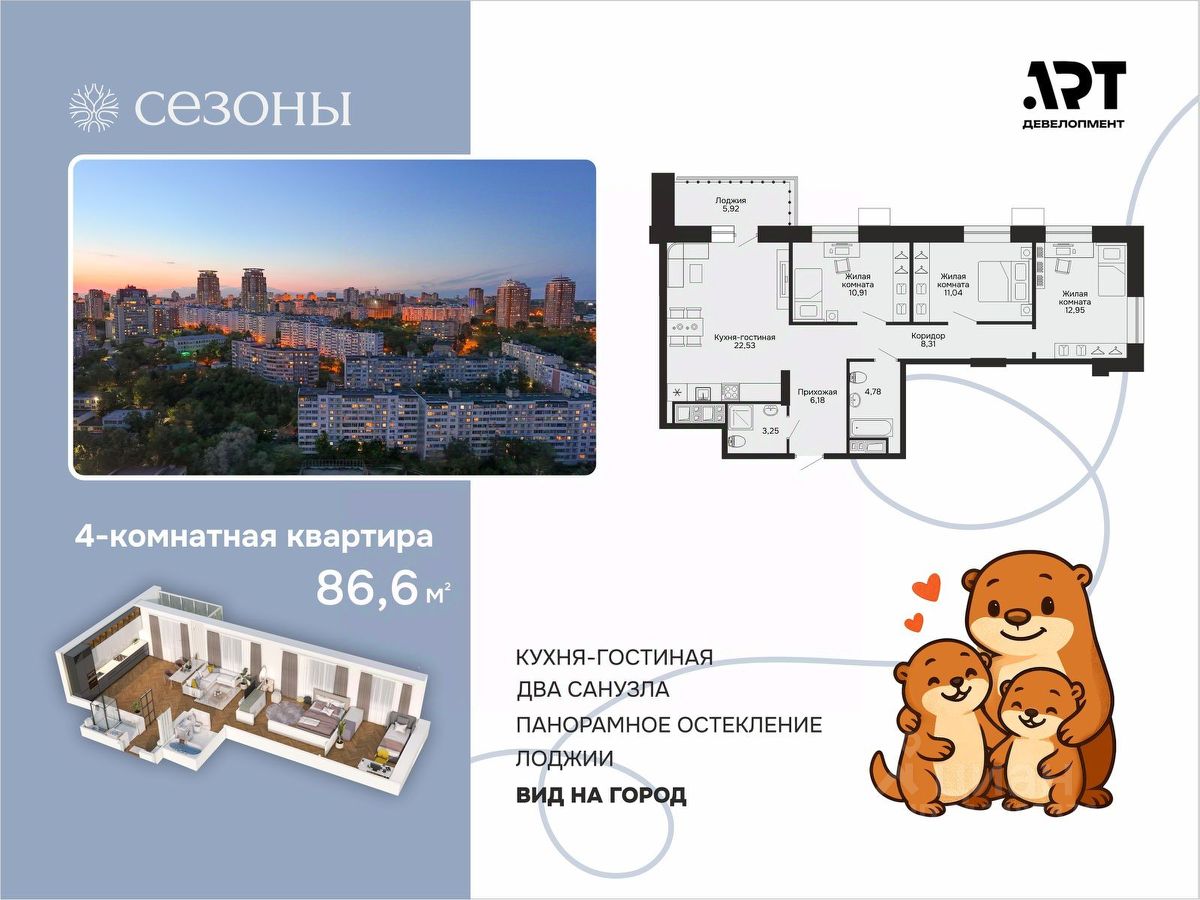 Зимние скидки! Выгода до 1,9 миллиона рублей. Цены от 7,2 миллионов рублей. Квартира 86,69 м2 свободной планировки с видами на город.