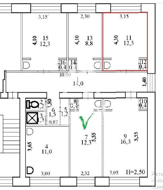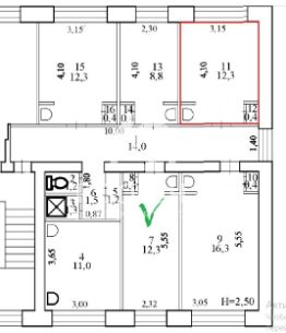 Комната расположена на 4 этаже 4-этажного дома, построенного в 1963 году. Общая площадь составляет 12,3 кв. м. Окна выходят во двор, а высота потолков — 2,5 м. В доме центральное отопление, монолитные перекрытия, есть наземная парковка.