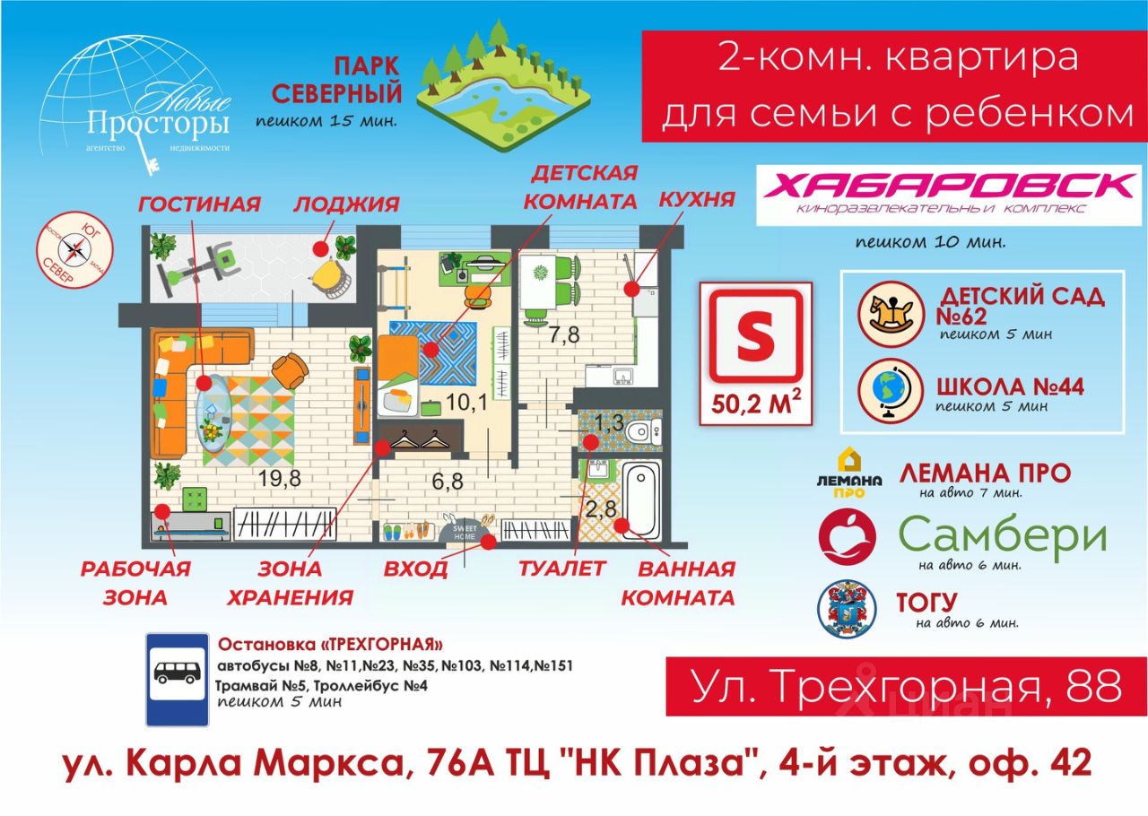 • В 4 минутах автобусная остановка - можно уехать в Аэропорт, Вокзал, Выборгскую, Воронеж, Хабаровск 2, площадь Ленина, Комсомольская площадь, Левый берег.