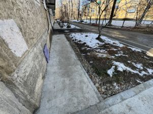 Соседи и жители всего дома трепетно относятся к благосостоянию подъезда и придомовой территории. Заасфальтировали подход ко входу в подъезд, заменили облицовку подвала, установили ограничители зелёной зоны.