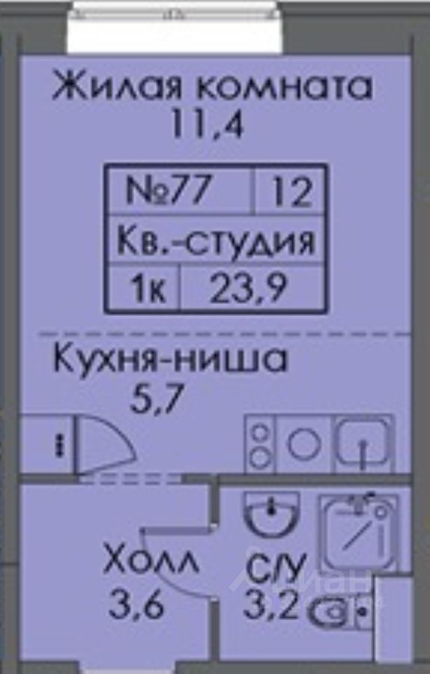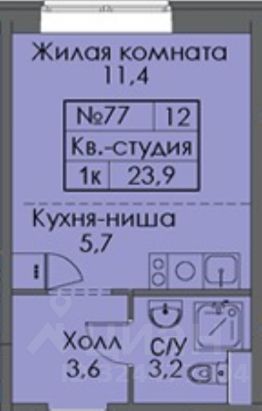 Студия площадью 23,9 м2 в жилом комплексе "Северный парк".