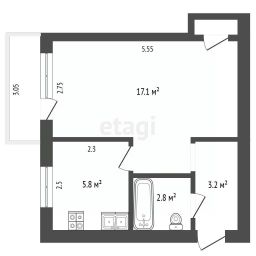 Будущим владельцам остается стиральная машина, большой встроенный шкаф и простор для своих фантазий.