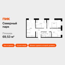 Продаётся 3-комн. квартира площадью 69,53 кв.м на 1 этаже 10 этажного дома (Корпус 10, Секция 2) проекта ПИК Северный парк. Светлый просторный подъезд на уровне земли, функциональная планировка, большие окна, без отделки.