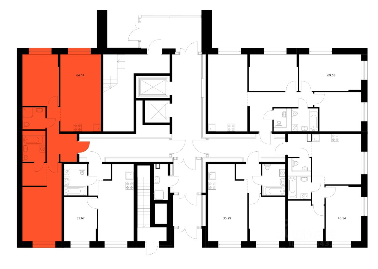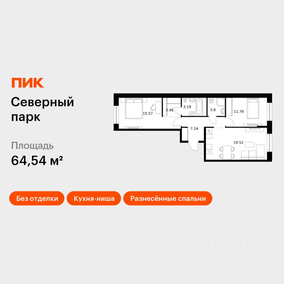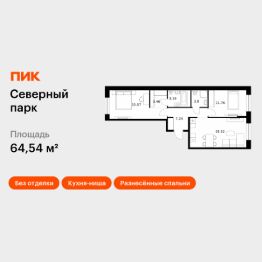 Продаётся 2-комн. квартира площадью 64,54 кв.м на 1 этаже 10 этажного дома (Корпус 10, Секция 2) проекта ПИК Северный парк. Светлый просторный подъезд на уровне земли, функциональная планировка, большие окна, без отделки.