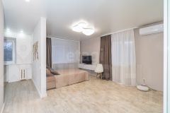 В квартире выполнен качественный дизайнерский ремонт: выровнены стены, заменены напольное покрытие, электропроводка и уложен кафель, в сан.узле установлен тёплый пол. Состояние объекта отличное, вся мебель и техника остаются новому владельцу.