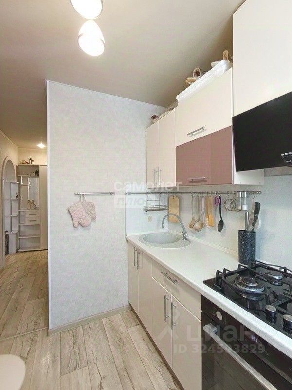 В качестве бонуса остается кухонный гарнитур, шкаф и диван в маленькой комнате.