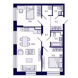 Продаётся 3-комнатная квартира в строящемся доме (Корпус 1), срок сдачи: II-кв. 2028, общей площадью 64.55 кв.м., на 4 этаже. Новый жилой комплекс "Самородный квартал" от Специализированного застройщика "ВИРА 27" расположен в г. Хабаровск по ул. Карла Маркса.