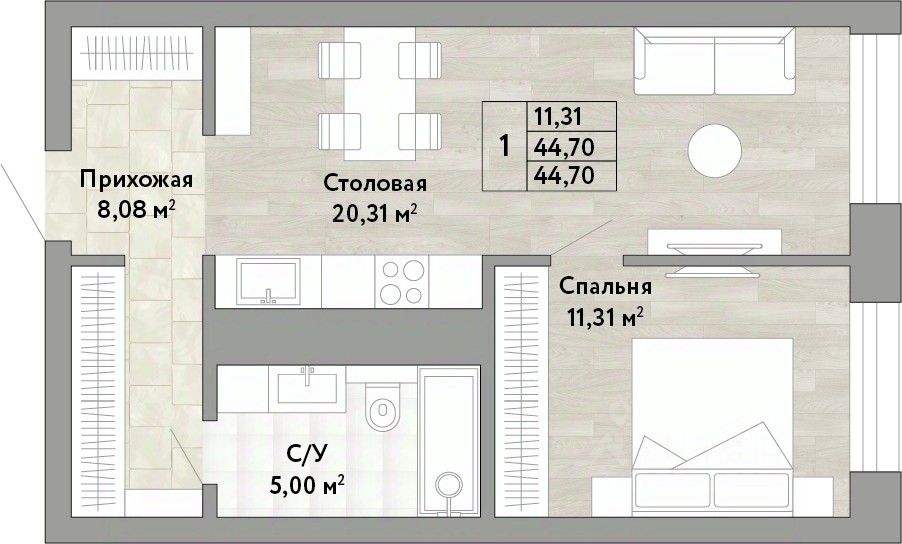 Продается 1-комн. квартира от застройщика с предчистовой отделкой в ЖК "Stories" на 4 этаже. Общая площадь: 44.7 кв.м., жилая: 11.31 кв.м., площадь просторной кухни-столовой: 20.31 кв.м. Все окна выходят на одну сторону. В квартире один совмещенный санузел. Высота потолков 2.9 м.