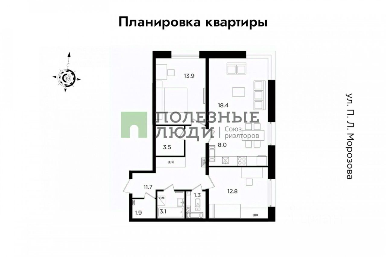 Окна квартиры выходят на северо-восток (ул. Павла Морозова)