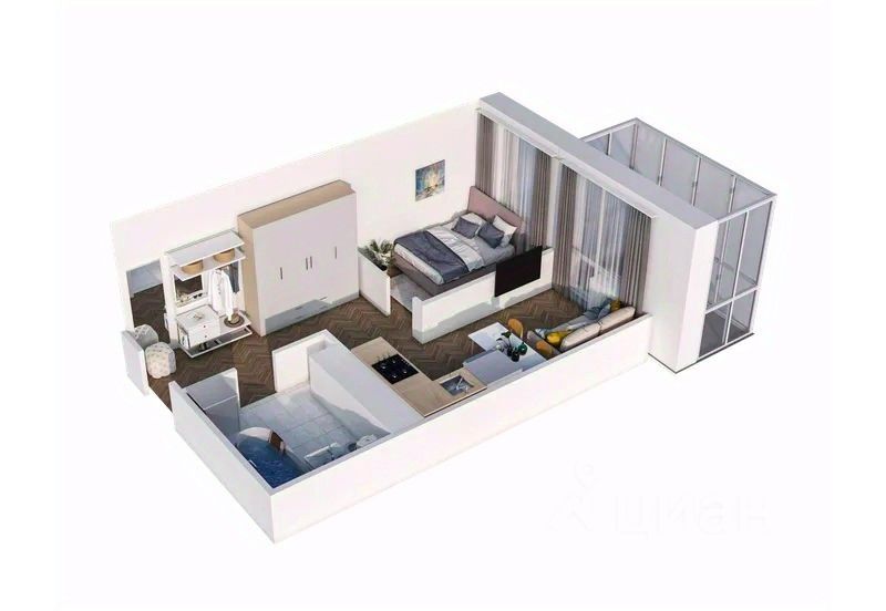 Квартира 35,81 кв.м свободной планировки с видами на город и Амур.