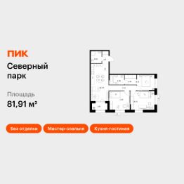 Продаётся 3-комн. квартира площадью 81,91 кв.м на 9 этаже 10 этажного дома (Корпус 11, Секция 1) проекта ПИК Северный парк. Светлый просторный подъезд на уровне земли, функциональная планировка, большие окна, без отделки.