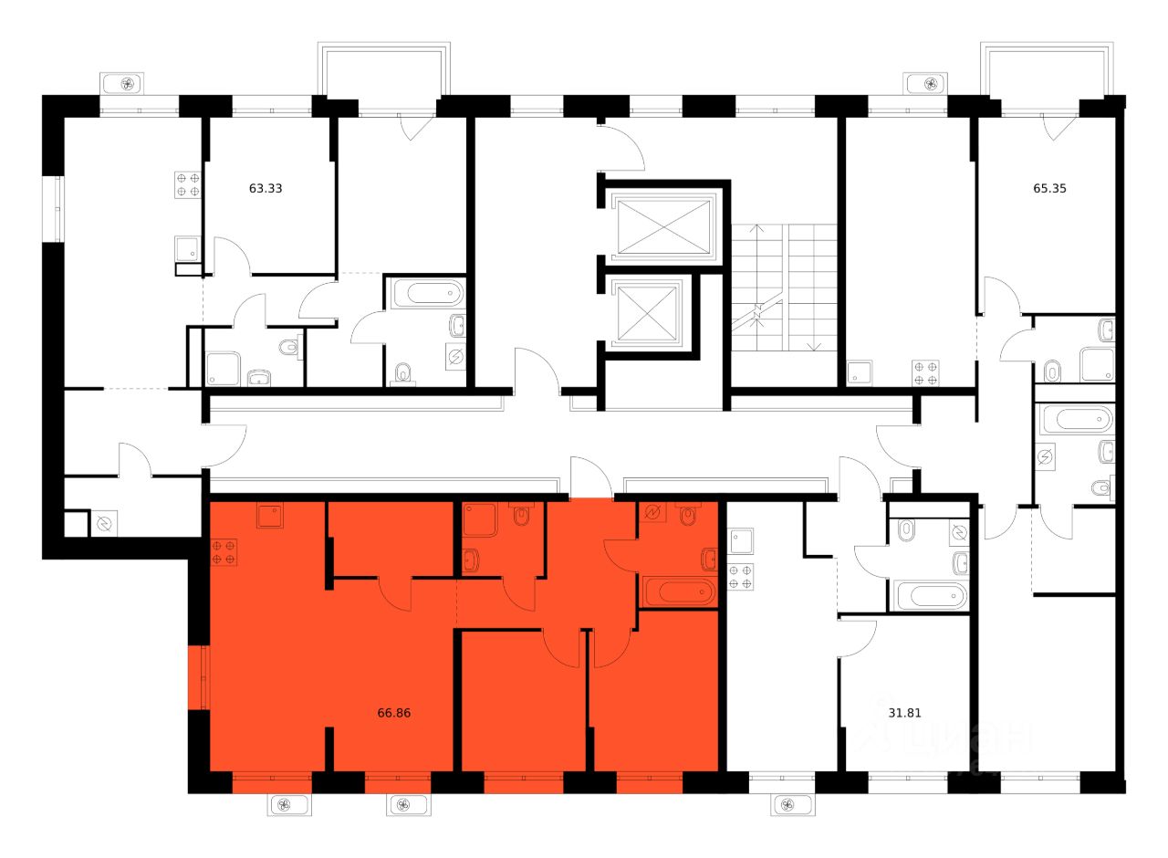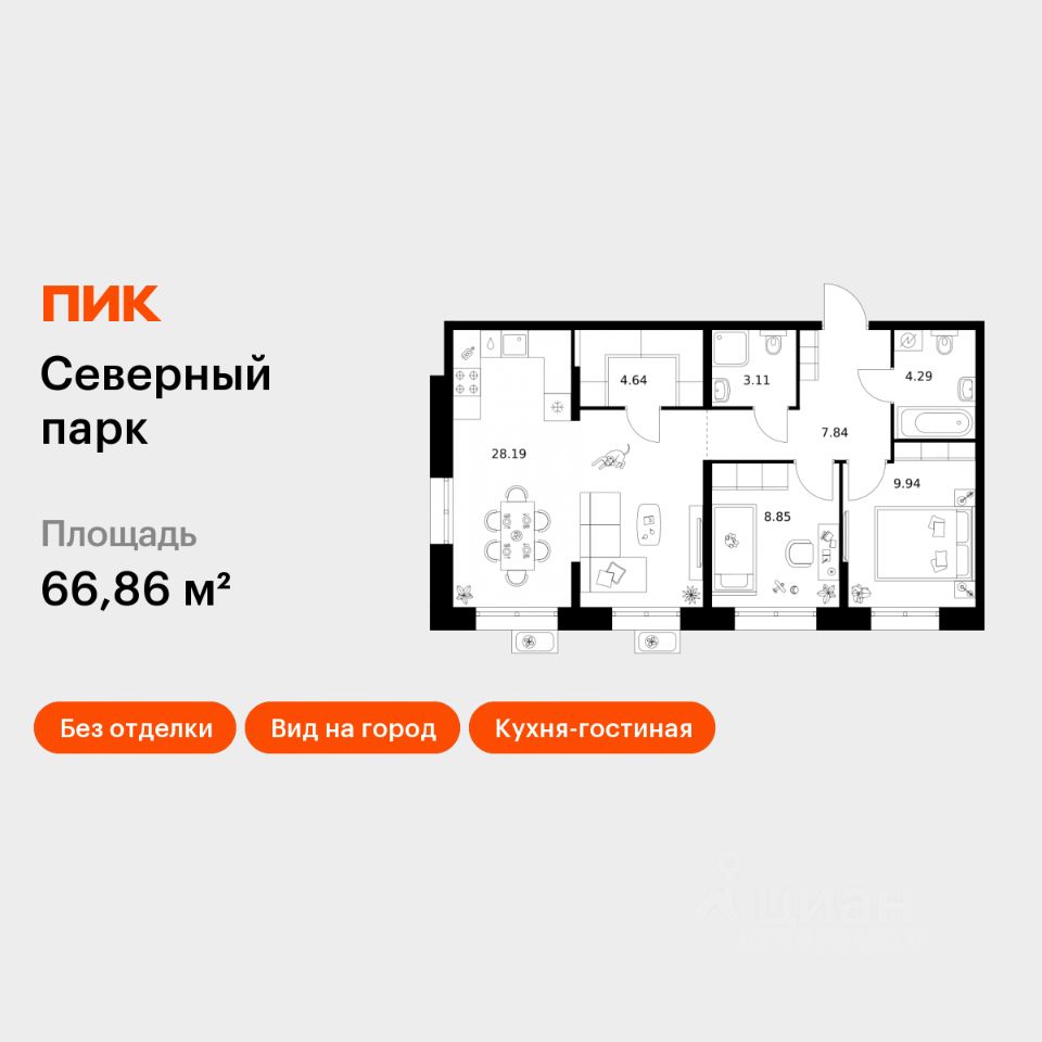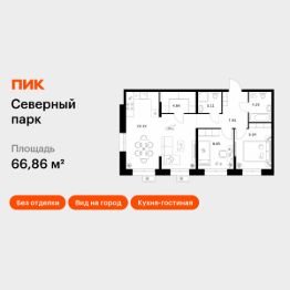Продаётся 2-комн. квартира площадью 66,86 кв.м на 6 этаже 10 этажного дома (Корпус 11, Секция 4) проекта ПИК Северный парк. Светлый просторный подъезд на уровне земли, функциональная планировка, большие окна, без отделки.