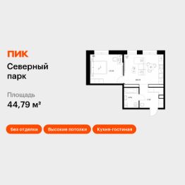 Продаётся 1-комн. квартира площадью 44,79 кв.м на 1 этаже 10 этажного дома (Корпус 11, Секция 2) проекта ПИК Северный парк. Светлый просторный подъезд на уровне земли, функциональная планировка, большие окна, без отделки.