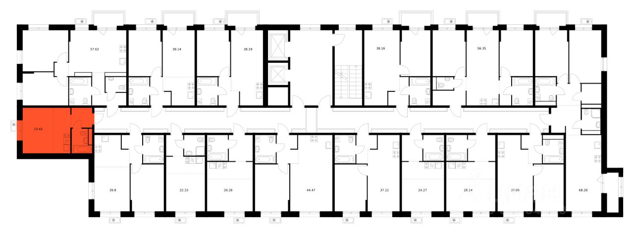 Продаётся квартира-студия площадью 23,43 кв.м на 10 этаже 10 этажного дома (Корпус 11, Секция 2) проекта ПИК Северный парк. Светлый просторный подъезд на уровне земли, функциональная планировка, большие окна, без отделки.