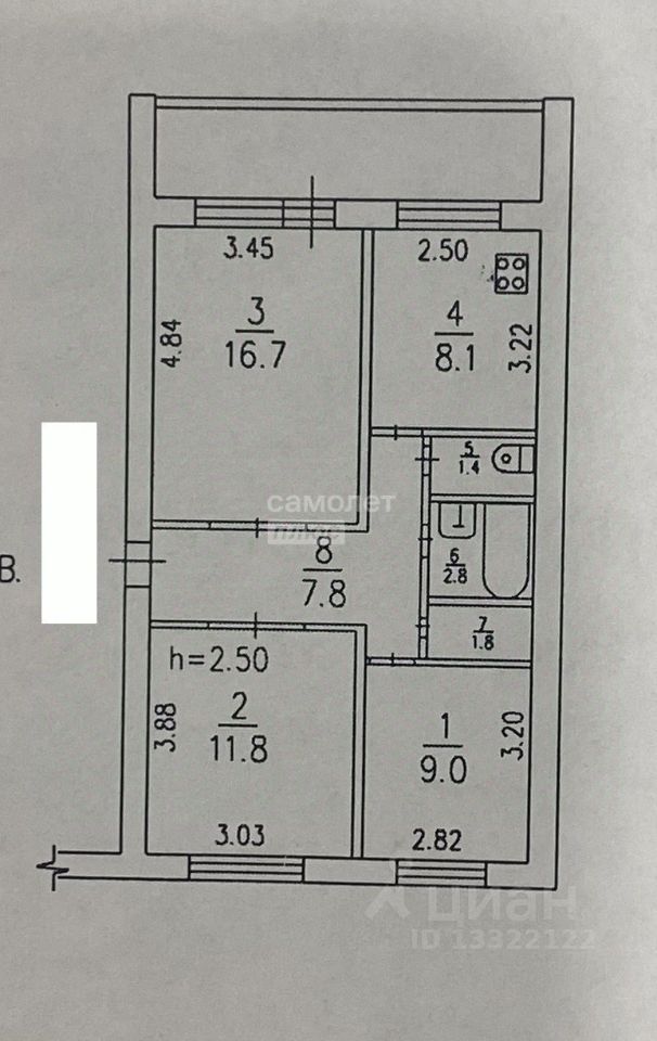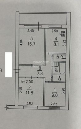 Комнаты 9+11.8+16.7+кухня 8,1м2.