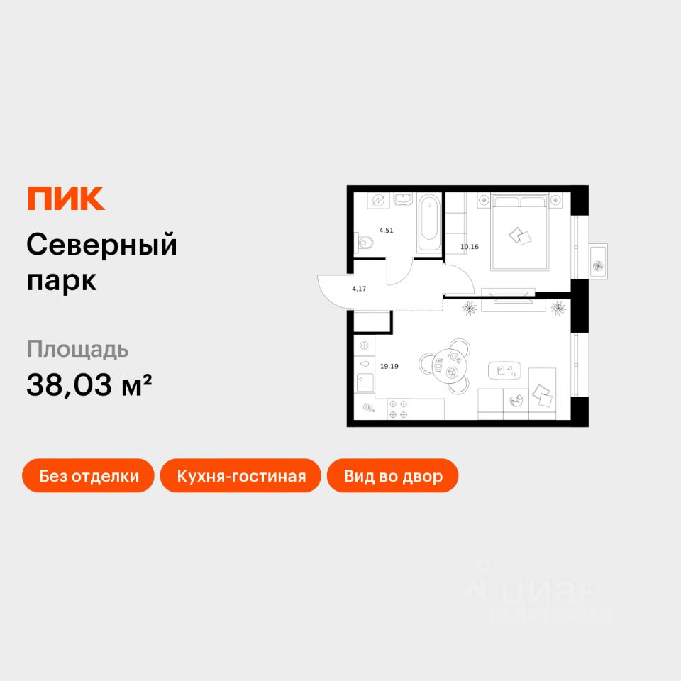Продаётся 1-комн. квартира площадью 38,03 кв.м на 3 этаже 10 этажного дома (Корпус 11, Секция 1) проекта ПИК Северный парк. Светлый просторный подъезд на уровне земли, функциональная планировка, большие окна, без отделки.