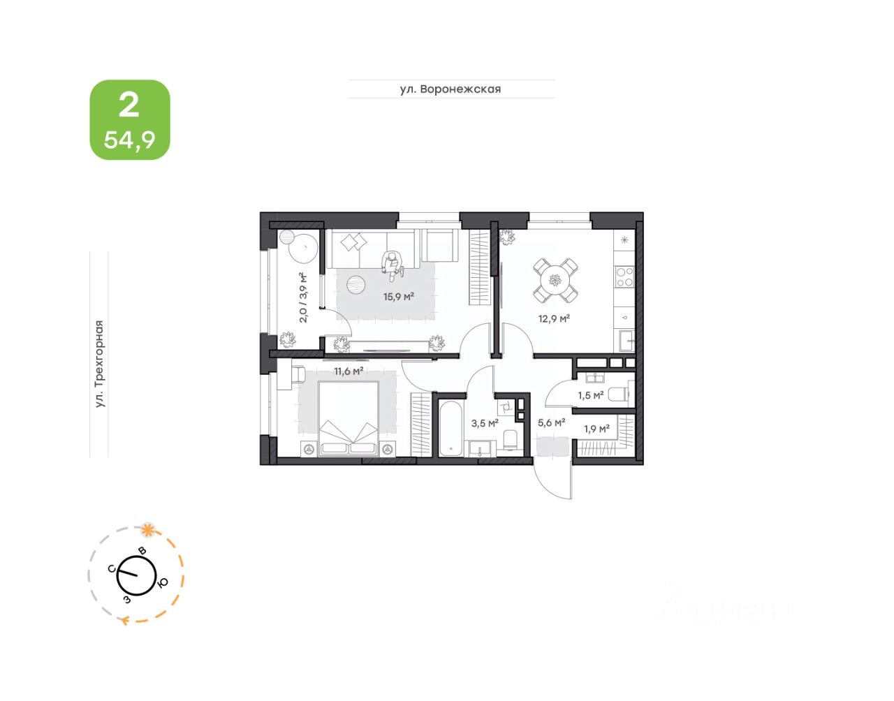 Классическая 2-комнатная квартира для семьи с ребёнком "Дружим семьями".
