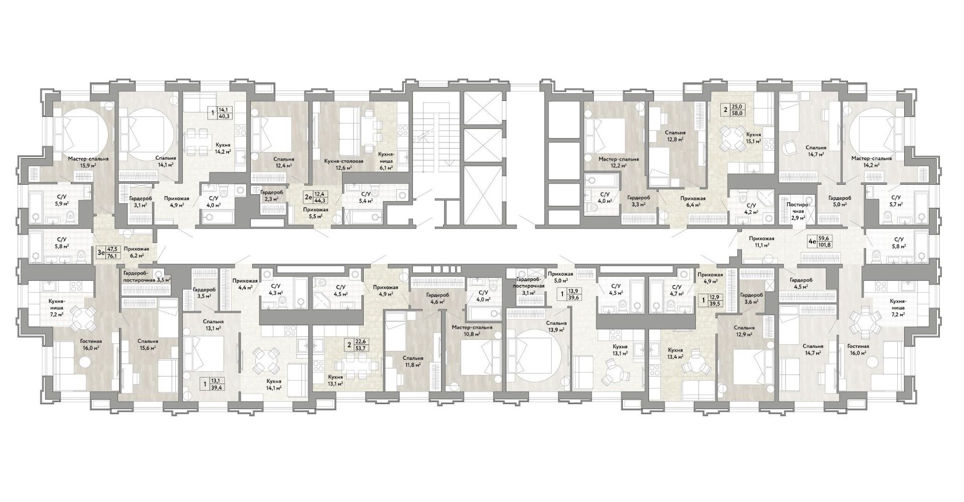Четырехкомнатная квартира с европланировкой в ЖК "Сердце Бонивура" на 14 этаже. Квартира без отделки, после выдачи ключей можно делать ремонт. Общая площадь: 101.8 кв.м., жилая: 60.3 кв.м., суммарная площадь гостиной-столовой с кухонной зоной: 21.4 кв.м. Европейская планировка, площадь комнат позволяет разместить в них все необходимое, а в просторной кухне-гостиной удобно как готовить, так и отдыхать. Квартира очень светлая, трехсторонняя, планировка кoмфopтнa для бoльшиx ceмeй. В квартире два совмещенных санузла. Высота потолков 2.85 м.