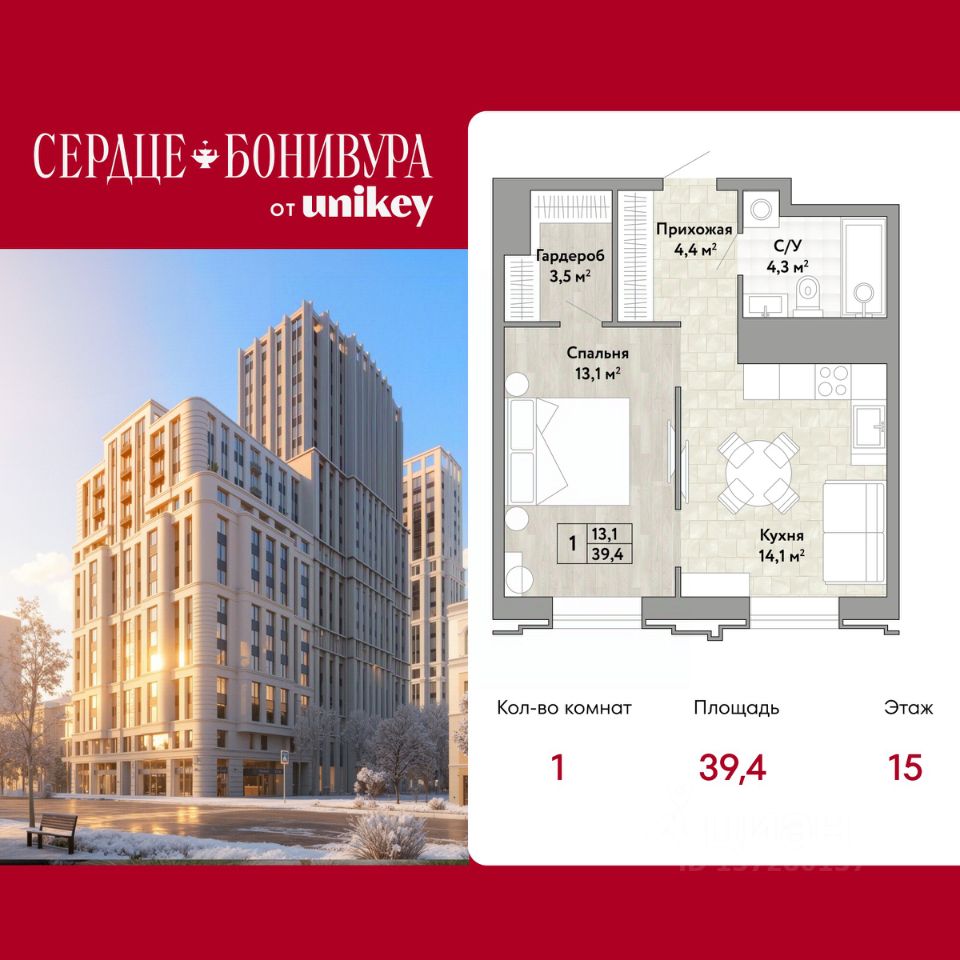 Просторная 1-комн. квартира в ЖК "Сердце Бонивура" на 15 этаже. Квартира без отделки, новый владелец может сделать ремонт по индивидуальному дизайн-проекту. Общая площадь: 39.4 кв.м., жилая: 13 кв.м., площадь просторной кухни-столовой: 14 кв.м. Все окна выходят на одну сторону. В квартире один совмещенный санузел. Высота потолков 2.85 м.