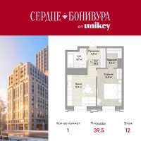 Просторная 1-комн. квартира в ЖК "Сердце Бонивура" на 12 этаже. Общая площадь: 39.5 кв.м. Высота потолков 2.85 м.