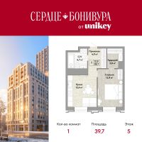 Однокомнатная квартира в ЖК "Сердце Бонивура" на 5 этаже. Общая площадь: 39.7 кв.м. Высота потолков 2.85 м.