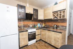 Окна закрываются без сквозняков Освещение встроенное, современное Кухня: Угловая, светлая, компактная Мебель из натурального дерева, черная столешница Газовая плита, место для холодильника Обеденный стол (не нужно на полу есть!)Стеллажи открытые — функционально и красиво Ванная комната: Красивая плитка с узорами (современный дизайн, не "совок")Ванна, стекло, перегородка Стиральная машина встроена под раковину — очень удобно Зеркало с подсветкой Полотенцесушитель Все работает, ничего не течет Туалет: Отдельный, чистый Полки для чистящих средств Приятная отделка Балкон: Застекленный — это еще 10+ м² полезной площади Встроенный шкаф для вещей Место для сушки белья Два окна — естественное освещение и вентиляция Жилые комнаты: Две полноценные комнаты (не "комнатушки")Спальня и гостиная? Спальня и кабинет? Спальня и детская? Вы решаете Оба окна выходят во двор (тихо, без магистралей)Одна комната даже оформлена с дизайнерским потолком (фотопечать неба)