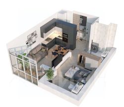 Просторная светлая 1-комнaтная кваpтира с большой кухней-гостиной и комфортным санузлом. Есть места для хранения. Лоджия с панорамным остеклением как персональная зона отдыха или работы.