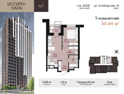 Просторная светлая 1-комнатная квартира 33-36 м². Здесь спальня, кухня-гостиная, комфортный санузел, гардеробная и постирочная, а также лоджия, которую можно оборудовать как зону отдыха или кабинет.