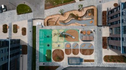 • Весь двор и входы в подъезды с большими прозрачными входными группами на одном уровне