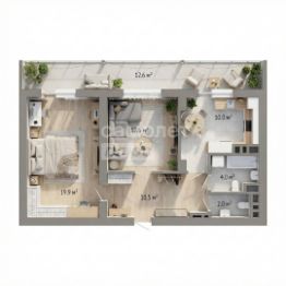 Арт. 128600930 Видовая евро-двушка 63.15 м2 в новом доме у Brosko Mall