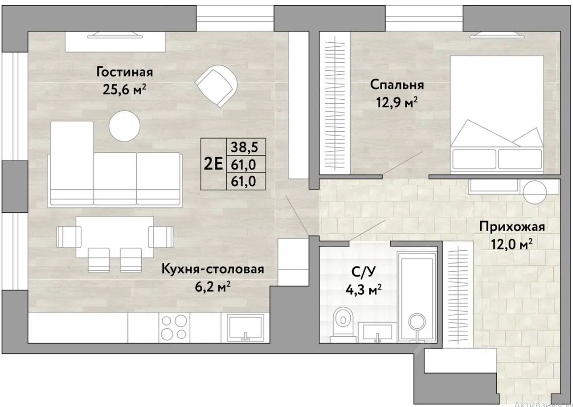 61 метр - полноценная двухкомнатная И очень светлая квартира ДЕШЕВЛЕ, ЧЕМ У ЗАСТРОЙЩИКА.