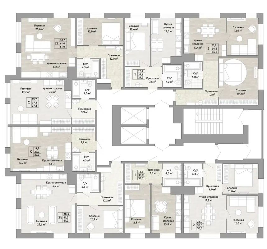 Комплекс состоит из четырех монолитных домов. На первых этажах домов обустроены бесплатные общественные пространства, такие как детские комнаты, спортзал и коворкинг-зона.