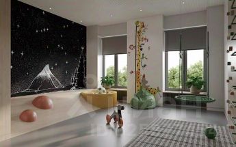 Для маленьких жителей Green-2 мы сделали игровую комнату. Здесь есть целая стена для рисования мелом, качели и интерактивные элементы для веселых развивающих игр.