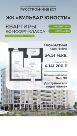 Звоните и записывайтесь на просмотр! Не упустите шанс стать владельцем квартиры в этом современном жилом комплексе.