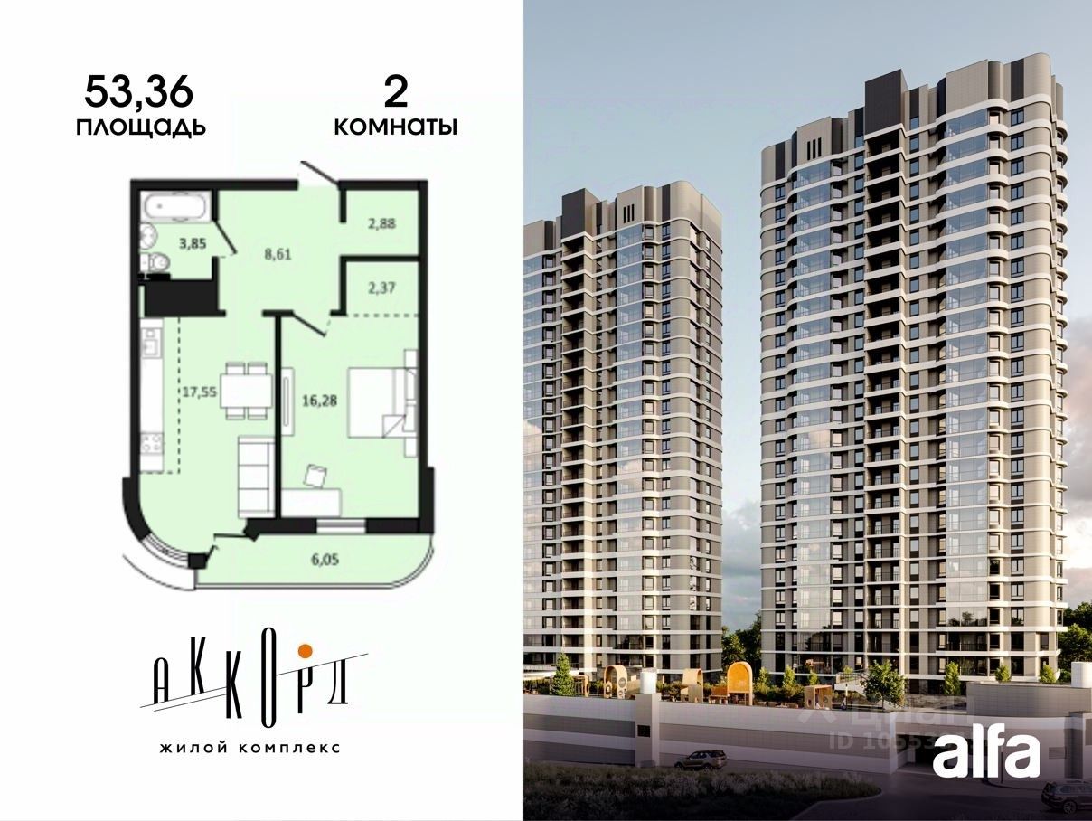 Продаётся 3-комнатная квартира 70,59 м2 от застройщика в жилом комплексе "Аккорд".