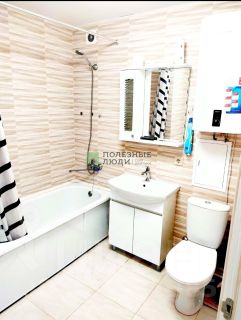 Большой совмещённый санузел в современном кафеле, новая сантехника, бойлер.