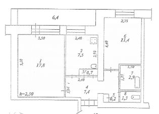 Общая площадь 55,4м.кв: